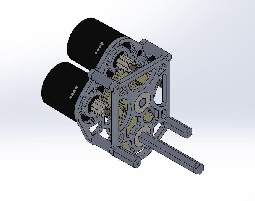 Today the drive train gearboxes where finished with CAD, leaving only the part drawings to be done. This will be our first time in recent years making a custom gear box. The plan is to get the gearbox cut tomorrow on our CNC router.