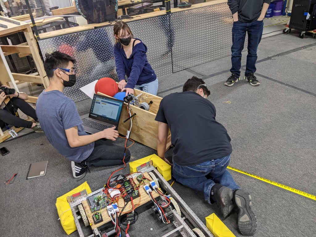Today was a productive day. Work started on bumper mounting, and brain pan placement. A brain pan is where you have the belly pan of the robot on top of the 2×1 frame rails and the space underneath becomes where you put all of your electronics. Prototyping continued today, the intake prototype moved under its own power and we took a few more practice shots with the shooter prototype.