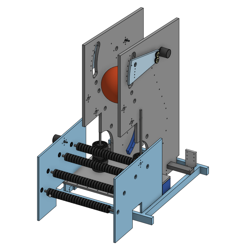 A non prototype version of the intake was also started to be worked on. The non prototype intake needs to be able to start inside our frame perimeter and be able to be deployed outside our bumpers. We plan on doing this with a four bar mechanism that is deployed by gas shocks.