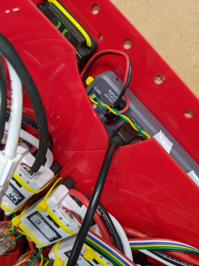 Work continued today towards getting MDF bot moving. The electrical panel got mounted to the side of MDF bot. After plugging in a battery we found a Spark Max that had the polarity flipped and was making bad noises. It was a bit of a pain to access the PDP because the electronics panel is double layered. We should really stop making them double layered. At least on the real robot we have a brain pan so hopefully we won’t have to double layer anything.