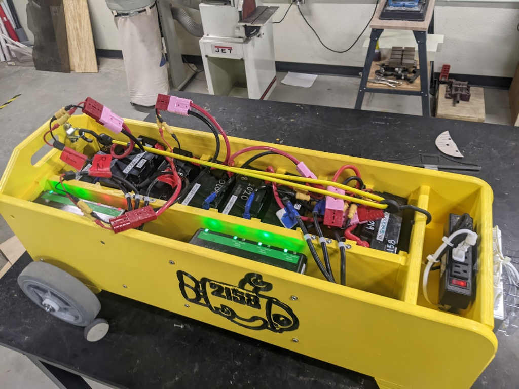 The battery cart was mostly finished today, we are just missing four plastic sliders(we accidentally bought 4″ ones instead of 2″ ones). Thanks to team 33 for providing the excellent plans for the battery cart. We added one modification, a 6 port USB C charger for phones at the top. Should hopefully help keep the pit a little bit more clean.