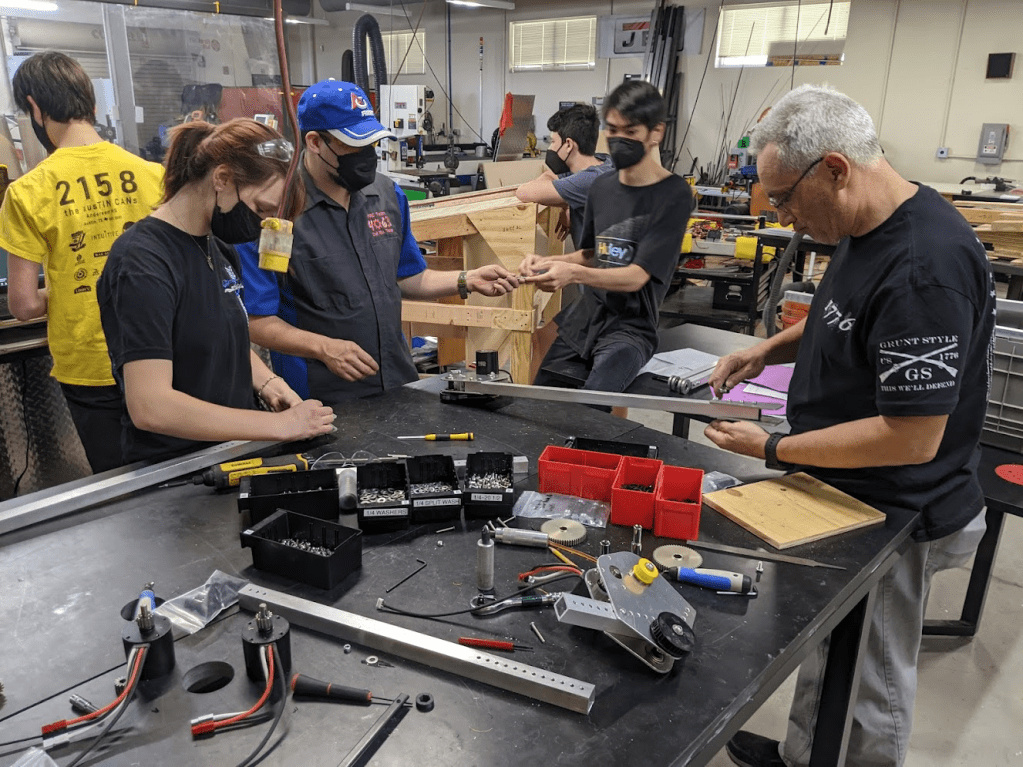 It was one of those moments where every one’s moral just craters. The students are looking on, thinking what went wrong. The mentors are scratching their heads thinking why didn’t we catch that. The CAD is check to see if we made errors. The field is checked as a last ditch hope to see if we just made it wrong. Nope, the errors where made in CAD, the assembly we tested the climb transitions on did not have the shooter assembly so we missed the fairly obvious collision. The team stares at the climber for an hour as we discuss ways to fix it.
