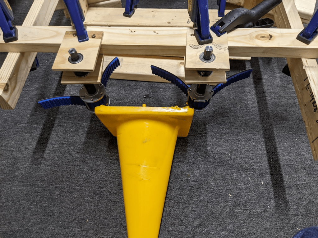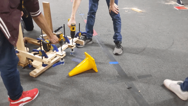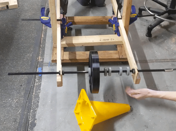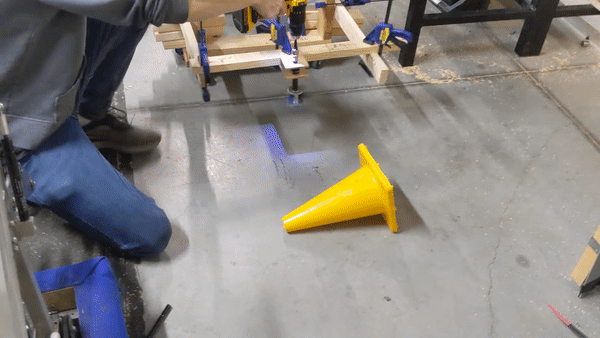 Inspired by the decent performance of this we added another weed wacker and shortened the length of tread. This was the most promising results we’ve had so far. The cone was ending up mostly centered and facing the same direction.