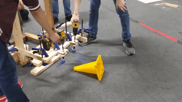We were inspired by Team 4481’s weed wacker concept and attempted to iterate on it today. They have a passive bar to stand the cone up afterwards, we aren’t interested in standing the cone up so we skipped that part. A single weed wacker kind of worked for us. Looking back at this we were testing on concrete and not field carpet so that might have been a problem.