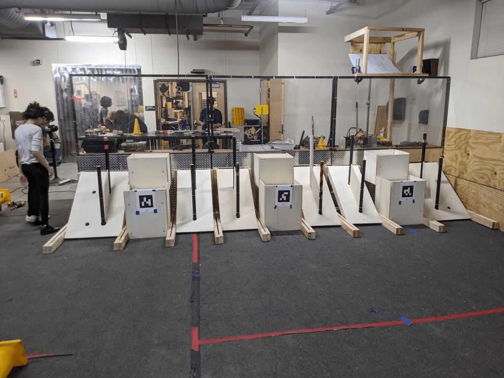 Next we took an old prototype and put it on the table to simulate replacing the back roller with a smooth surface. This worked amazing well to center the cones. On top of the table is a piece of poly carbonate to reduce friction. This worked well enough so we’ll probably end up exploring removing or changing the location of the back roller more on Saturday.
