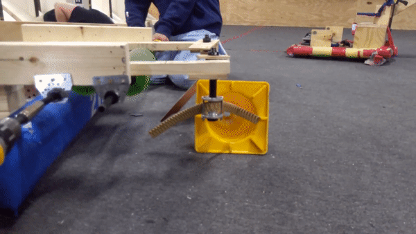 We tested the 4″ vectored intake wheels a bit more today. This prototype is hard to get the performance we want out of it. The back roller positioning is problematic, too low the cone gets stuck perpendicular, too high the cone doesn’t get picked up. We are going to let this prototype take a break for while.