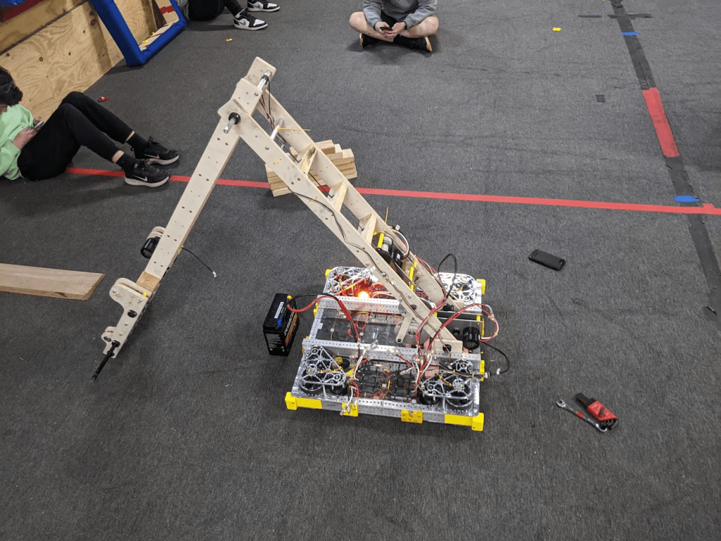 Last week we broke the spacers that mount the “choo choo” mechanism to the frame. These 3D printed spacers were reprinted with 5 wall count and 20% infill and replaced. The arm was also shuffled over to the competition robot because the practice bot doesn’t have enough motor controllers. After rigging the second stage, mounting two through bore encoders and wiring everything we turned the arm over to programming sub team.