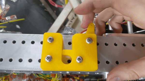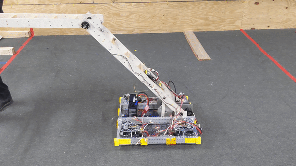 There are two carbon fiber forks that are articulated down by a gas shock and servo combination. These two forks are then driven under our partner robot. Next a cam rotates beneath the forks which lifts the forks and raises our partner off the ground. We then drive up onto the charge station to get dock and engaged.