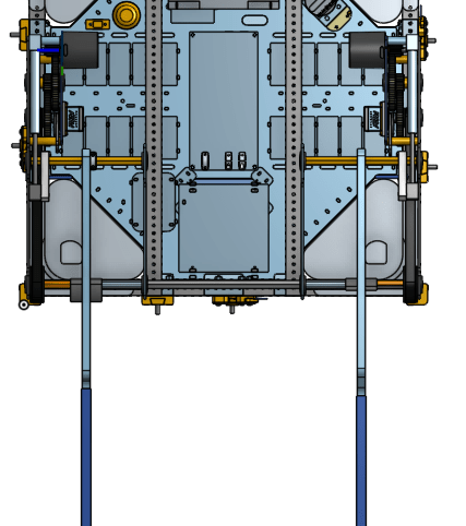 The forks and the cams on the buddy climb can be moved in or out up to 4″ on each side. The forks are also 27″ long, these two items allow us to work with a wide variety of drive base configurations. This includes all configurations of the kit bot, 27″ forks will reach to the the inner part of the second frame rail.