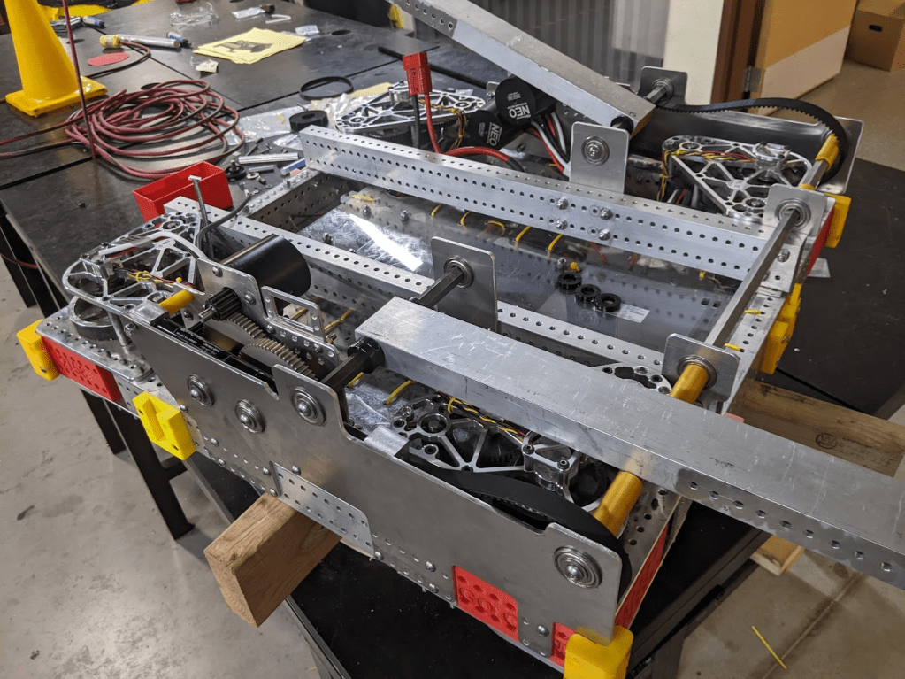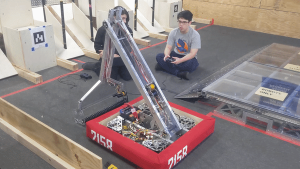 Our programming team has been in the shop every day since Saturday when we turned the robot over to them to program the arm. We’ve fixed the inverse kinematics that is used for positioning the arm. Next we are working on moving to a profiled PID controller which will help the arm move more smoothly. The below gif is one of the first tests of the arm running on simple closed loop control.