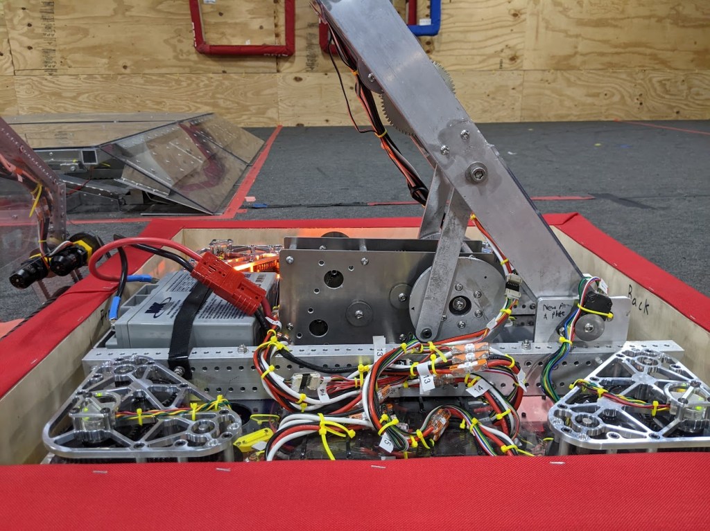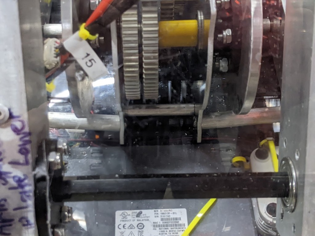 For a quick temporary fix we’ll be adding in double the number of stand offs along the bottom. I expect this will buy us a day or two of testing at most. Tomorrow night CAD will be redesigning the gearbox to better handle the forces from the arm.