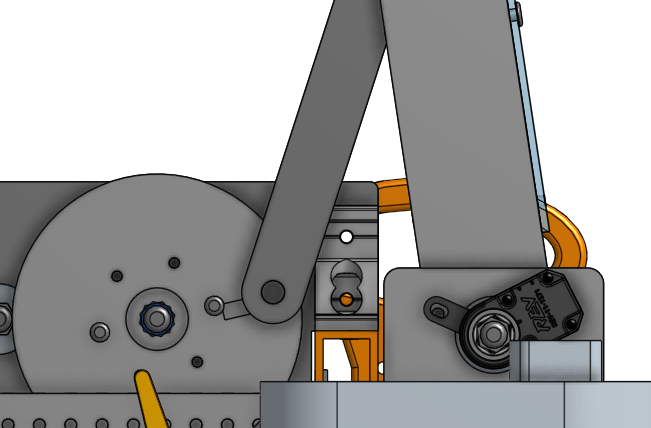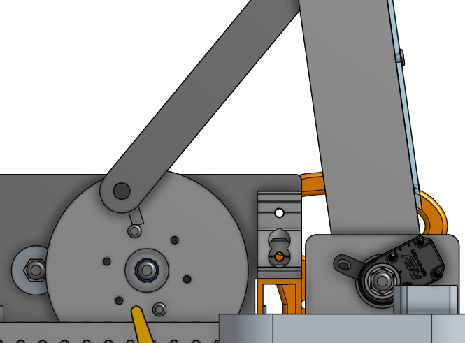 We’ve been having problems controlling the choochoo mechanism. The linkage that moves the arm up and down can rotate infinitely around a circle. For each arm angle there are two different spots the choochoo linkage could be in. Both images below have the same arm angle of ~82 degrees, but very different choochoo wheel positions.