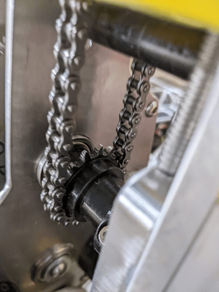 Quick update from last night, we added an inline chain tensioner to the arm. This makes adjusting the tension of the chain super easy.