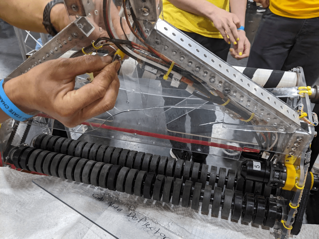 We also broke a few bumper dove tail mounts, these in there current iteration are sort of consumables. The dove tails need a little more reinforcement so they stop breaking. The bumper mounting system got a lot of fan fare at DCMP. We plan on making another iteration that will make changing out the parts even easier and slightly stronger dovetails.